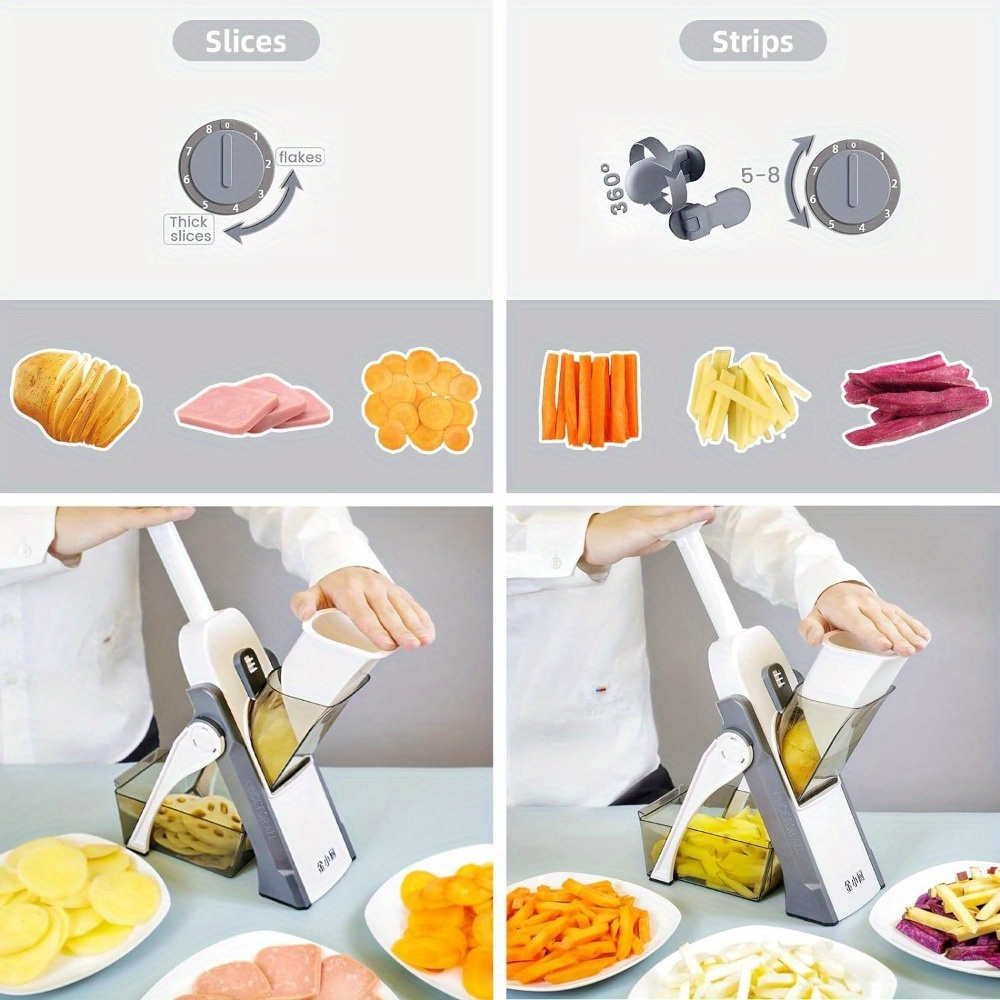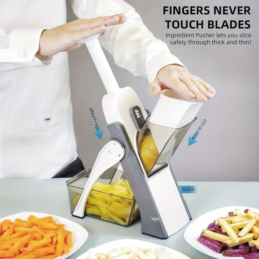 • 5-in-1 vegetable chopper offering versatile slicing and chopping options.